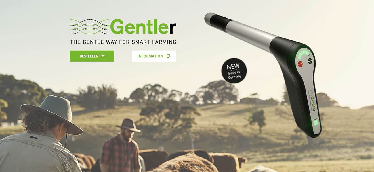 Um Tier und Mensch während schwieriger oder gefährlichen medizinischen Behandlungen und Pflegemaßnahmen zu schützen, wurde die Reizstrom-Sonde “Gentler” entwickelt. Das Gerät wird beispielsweise bei der Klauenpflege eingesetzt. Wo früher üblicherweise eine Fixierung mit Klemmgerüsten oder der Einsatz von Medikamenten notwendig waren, um die Tiere für die Dauer einer Maßnahme ruhig zu stellen, bietet der „Gentler“ eine gefahrlose und schonende Alternative zum Schutz von Tier und Mensch. Er stimuliert das Nervensystem des Tieres durch einen elektronischen Impuls, bei dem die ergonomisch geformte Spitze der Sonde dem Tier rektal eingeführt wird. Anschließend kann der Reizstromimpuls das Tier durch eine vorübergehende Betäubung eines Teils der Muskeln effektiv ruhigstellen, was für das Tier in der Anwendung gesundheitlich völlig unbedenklich ist.